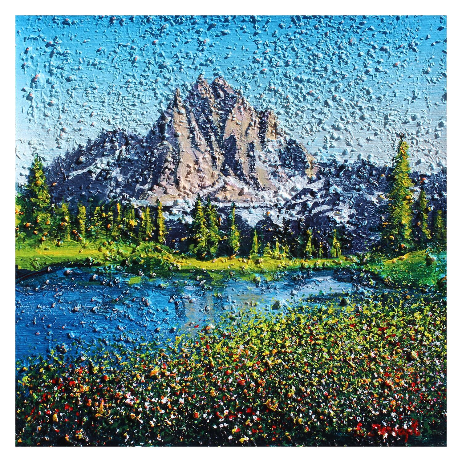This unique and original contemporary artwork "Entre lac et montagne" has been created by the contemporary artist Dessapt Elika.