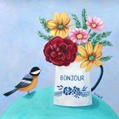 Bonjour fleurs avec oiseauPainting Bonjour fleurs avec oiseau by Sally B | Painting Naive art Still-life Acrylic