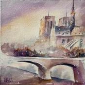 Paris at sunsetPainting Paris at sunset by Khomyakova  Liliya  | Painting Naive art Urban Watercolor