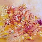 At the age of 12, during a visit to the Tate Gallery in London, Emmanuelle encountered the first paintings that made her want to paint. She decided to attend a fine arts workshop outside her regular school curriculum, and after receiving a high school diploma in the arts, she joined the School of Fine Arts. She studied drawing and preferred figurative painting initially. The light of the Brittany coast, always changing and capricious, was a source of inspiration and desires for her. After painting from nature and photos, she decided to give free rein to her imagination and to trust the colours as her only medium, and thus she moved definitively to abstraction. On a trip to Russia she met many passionate artists (musicians, actors, filmmakers), and on returning to France, she became a schoolteacher. The overwhelming artistic imagination of children taught her much and this experience helped her to affirm her own colours as her 'joie de vivre'. She then devoted herself entirely to painting.
