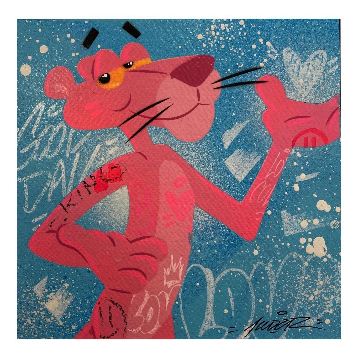 This unique and original contemporary artwork "Pink Panther" on the subject of Pop icons has been created by the contemporary artist Lemoine Mael.
