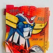 The artist used Acrylic, Wood, Posca media on Wood to create this Pop-art, Small size painting.