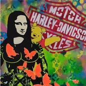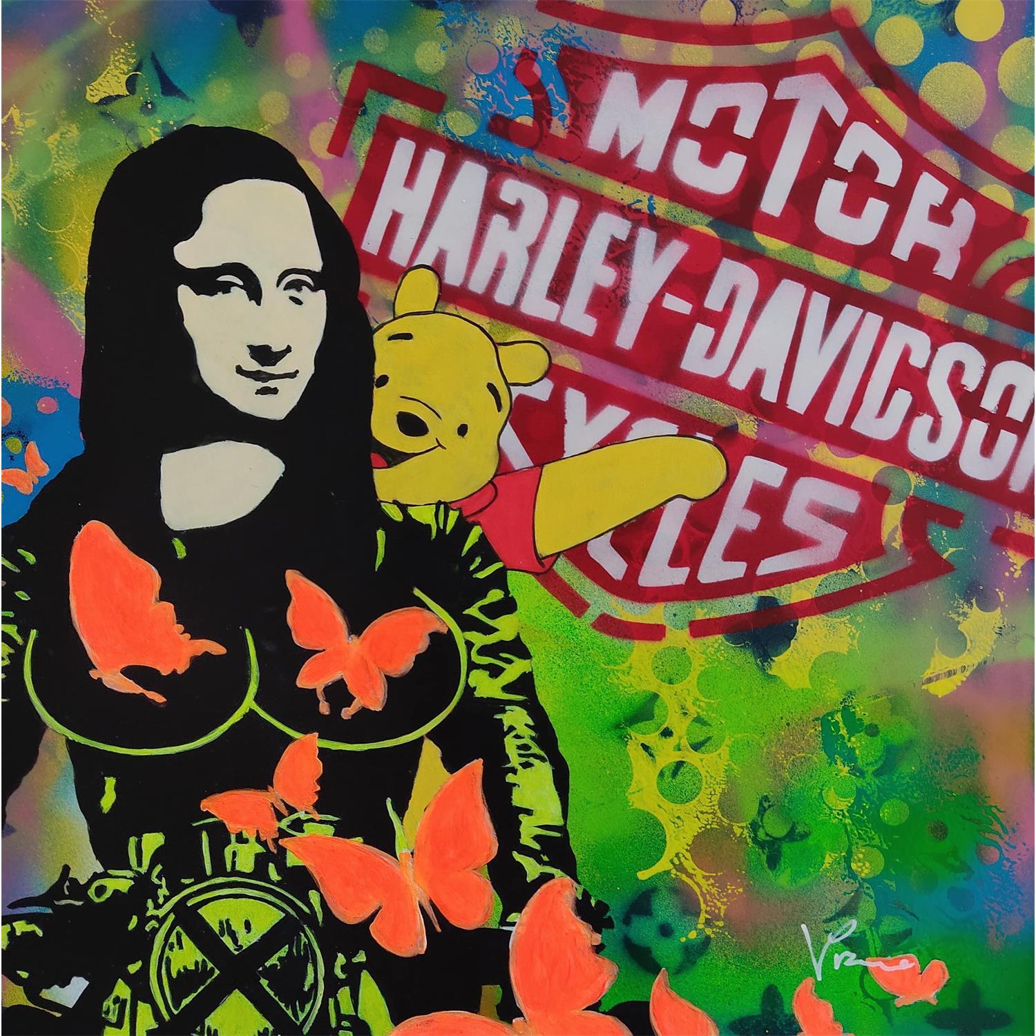 This unique and original contemporary artwork "Friends on a motorcycle" on the subjects of Pop icons, Portrait has been created by the contemporary artist Przemo.