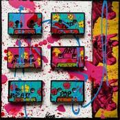 Painting Cow K7 by Costa Sophie | Painting Pop-art Pop icons Acrylic Gluing Upcycling
