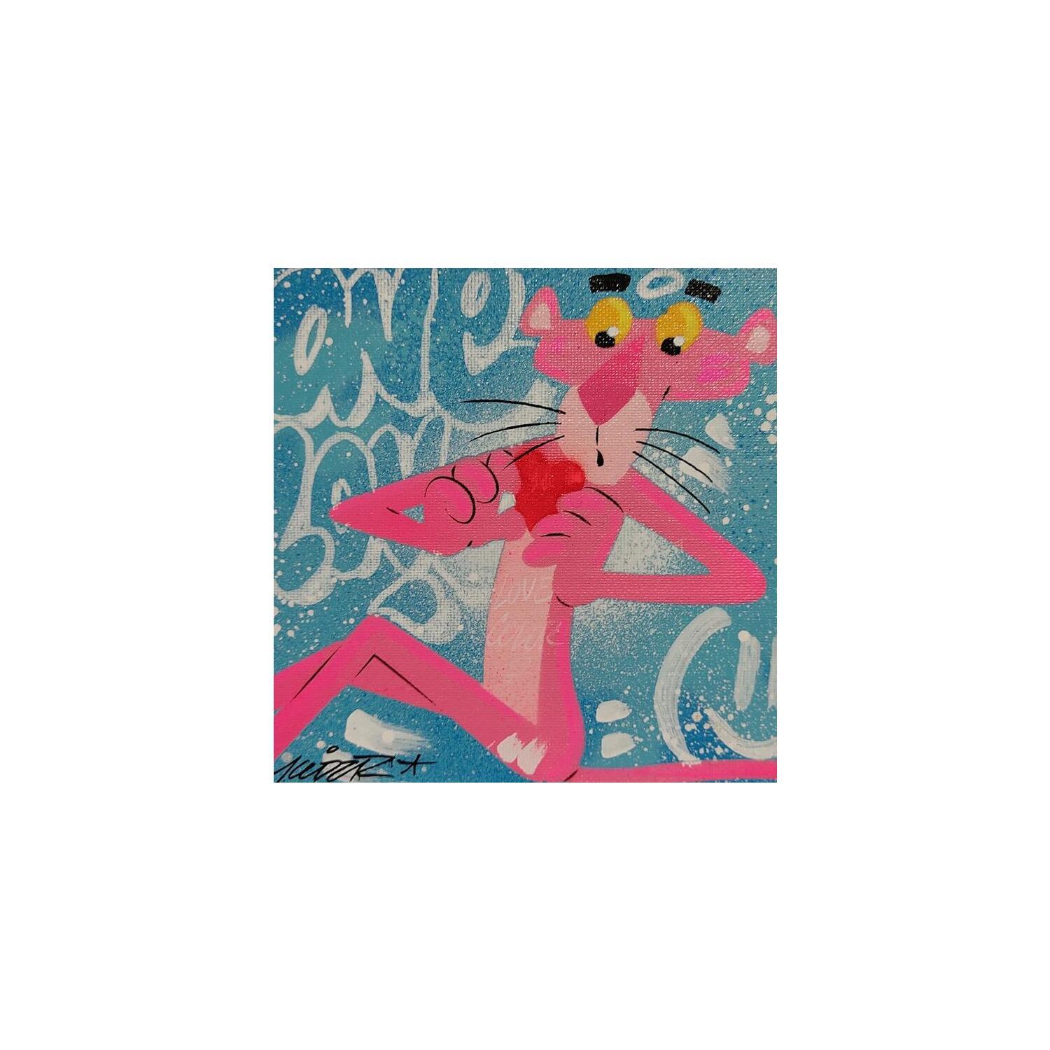 This unique and original contemporary artwork "Amour Rose" on the subject of Pop icons has been created by the contemporary artist Lemoine Mael.