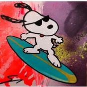 This unique and original contemporary artwork "SURFIN SNOOPY" on the subject of Pop icons has been created by the contemporary artist Mestres Sergi.