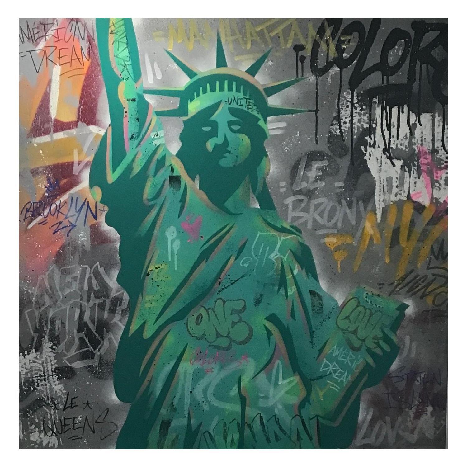 This unique and original contemporary artwork "American dream" on the subject of Pop icons has been created by the contemporary artist Lemoine Mael.