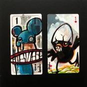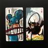 The Breton Loic Tarin, aka Doudoudidon, passed the baccalaureate, then a degree in advertising graphic design. He started off creating images and illustrations, and more recently it clicked into place for him that he should start an artistic life. Influenced by his often technical and scientific readings and listening, he has long wondered about the layout of the universe, Darwinian theories, human sciences… Considering that "he knows nothing", he creates poetic, expressive and intuitive "paintings" (for him painting his first and foremost silent poetry). The idea of distortion of media is the basis of his artistic practice. He likes to use what is initially recyclable waste. He also likes to distort objects like playing cards with themes inspired by the Middle Ages.