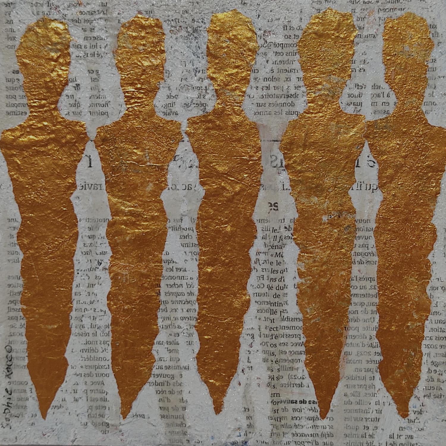 This unique and original contemporary artwork "Les 5 d'or " has been created by the contemporary artist Rocco Sophie.