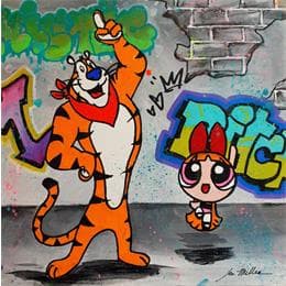 This unique and original contemporary artwork "Tiger power" on the subject of Pop icons has been created by the contemporary artist Miller Jen .