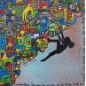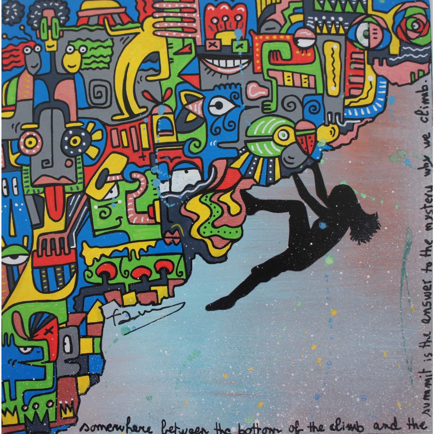 This unique and original contemporary art piece "Conquer it!" was created by contemporary artist Fanny. The artist used POSCA markers and acrylic paint to create this small wooden Street Art style painting.