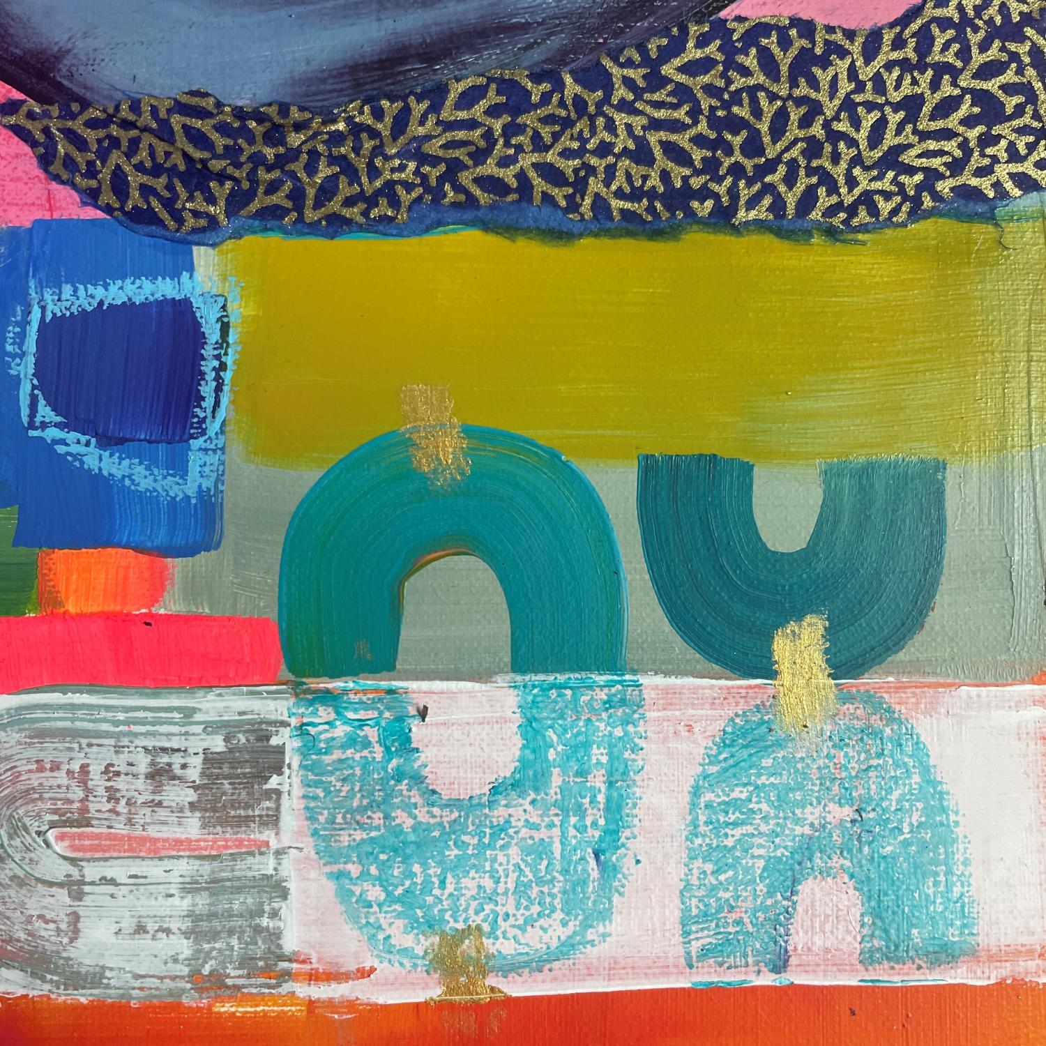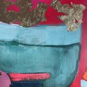 The artist used Acrylic, Gluing, Pastel, Gold leaf media on Canvas to create this Abstract, Large size painting.
