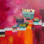 This unique and original contemporary artwork "Le mont des amphores" on the subject of Landscapes has been created by the contemporary artist Lau Blou.