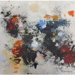 The artist used Acrylic, Charcoal media on Canvas to create this Abstract, Small size painting.