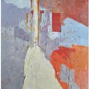 This unique and original contemporary artwork "La ville orange " on the subjects of Urban, Life style has been created by the contemporary artist Tomàs.