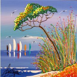 This unique and original contemporary artwork "Naissance du bonheur" on the subjects of Landscapes, Marine has been created by the contemporary artist Fonteyne David.