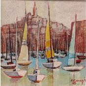 This unique and original contemporary artwork "Régate à Marseille 2 AQ57" on the subjects of Landscapes, Marine has been created by the contemporary artist Burgi Roger.