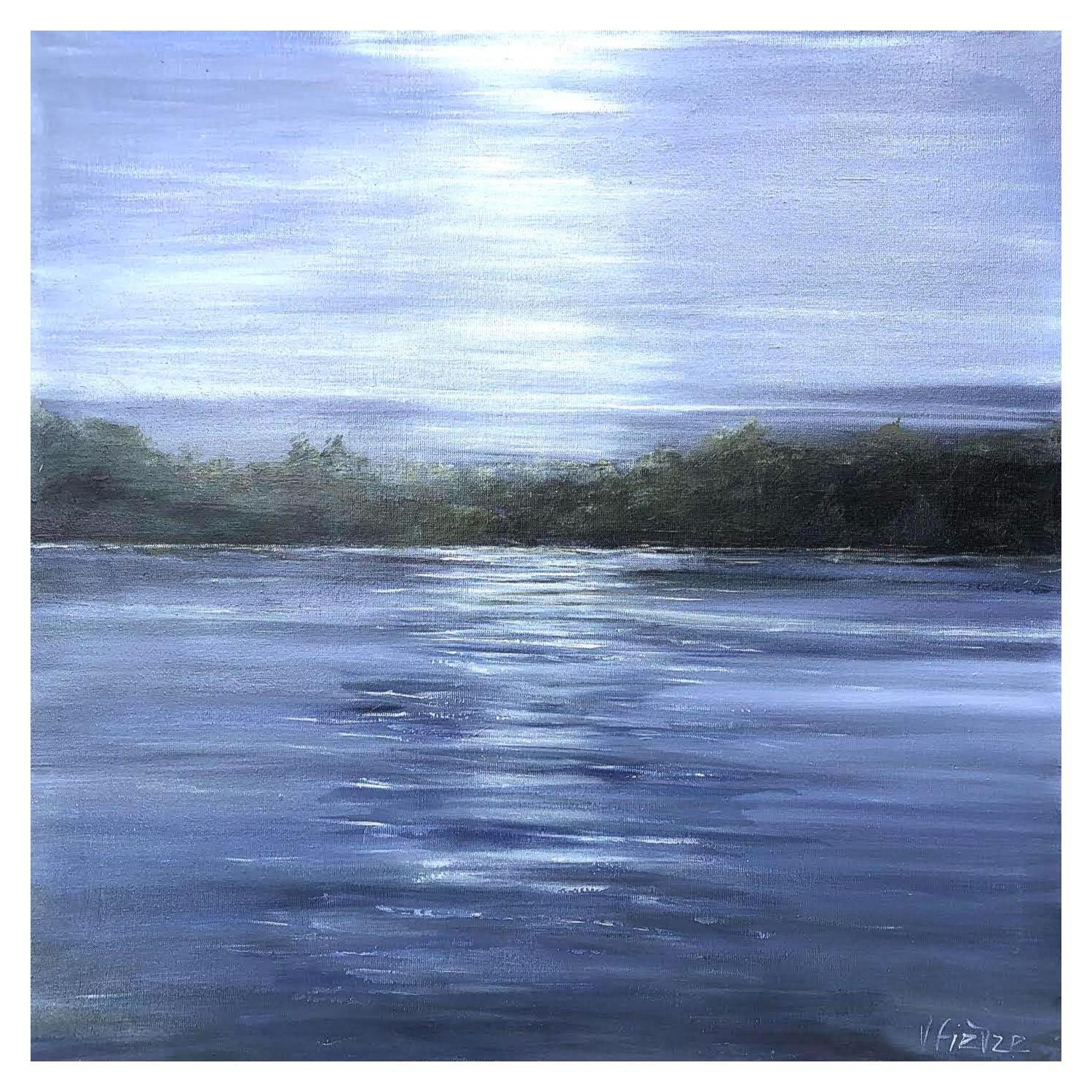 This unique and original contemporary artwork "Loire au clair de lune" on the subject of Landscapes has been created by the contemporary artist Fièvre Véronique.
