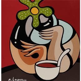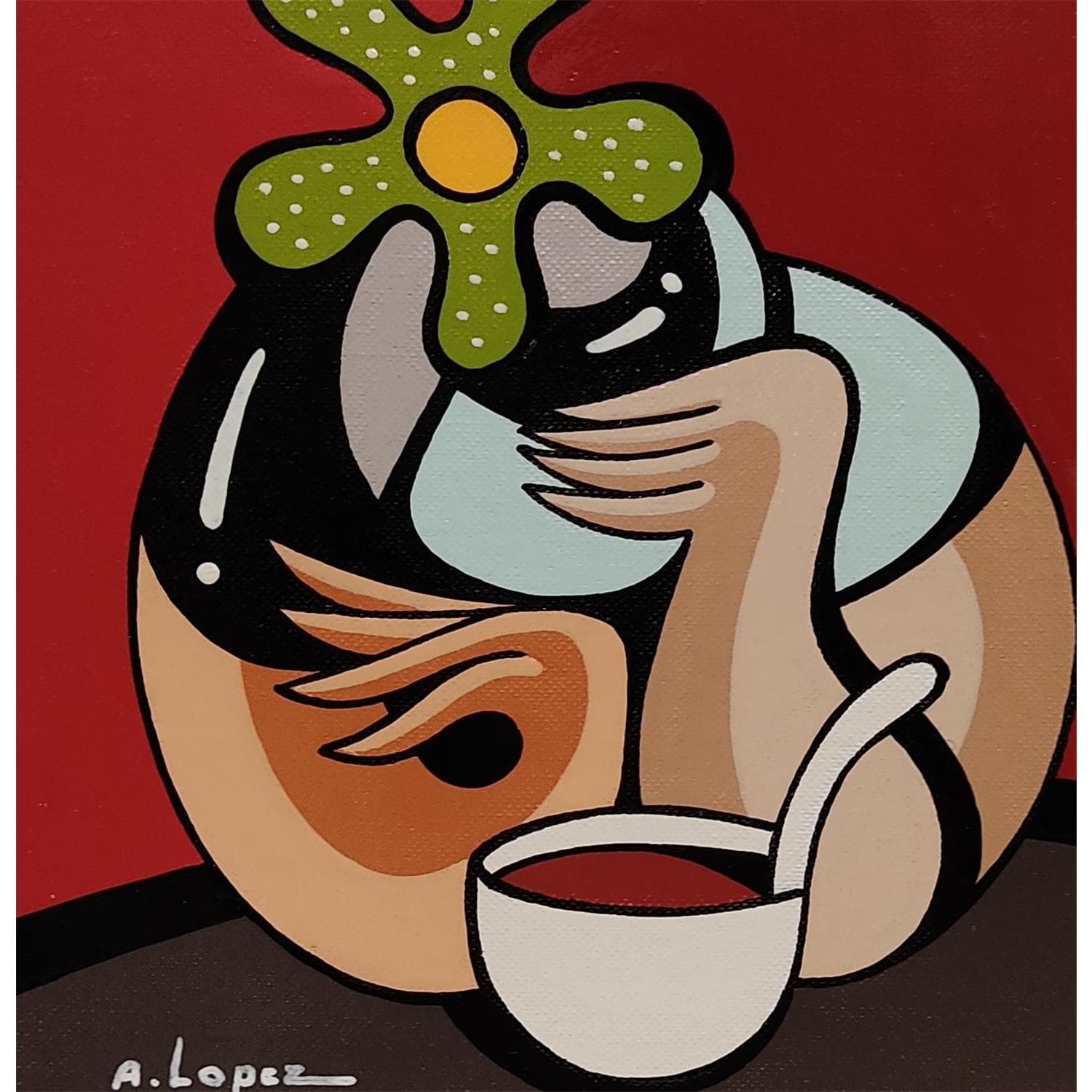 This unique and original contemporary artwork "CHOCOLAT TROP TOT" on the subject of Life style has been created by the contemporary artist Lopez Alfredo.