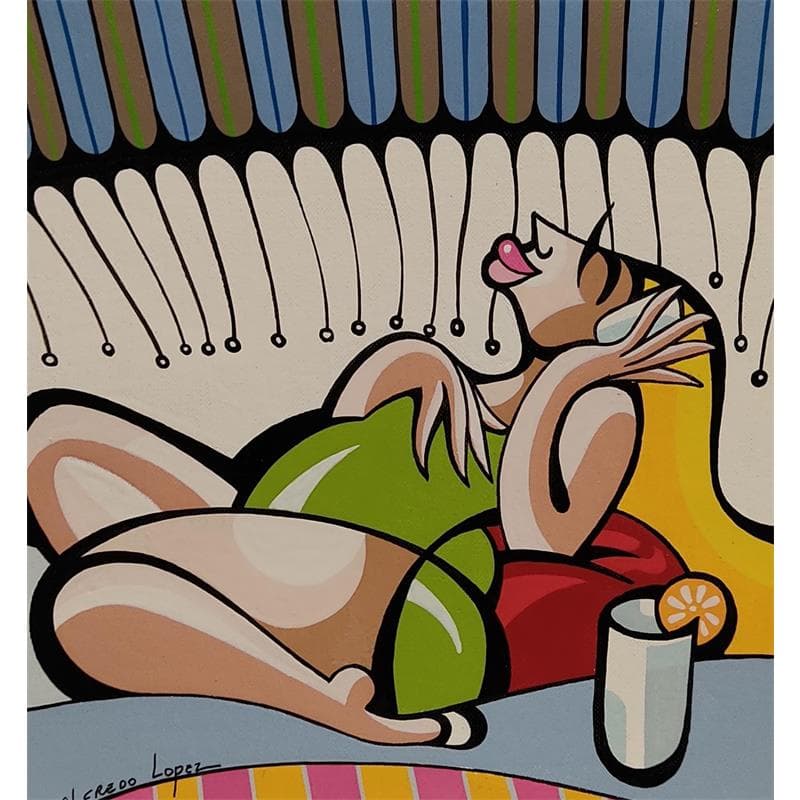 This unique and original contemporary artwork "L'ANNONCE DE LA BONNE NOUVELLE" on the subject of Life style has been created by the contemporary artist Lopez Alfredo.