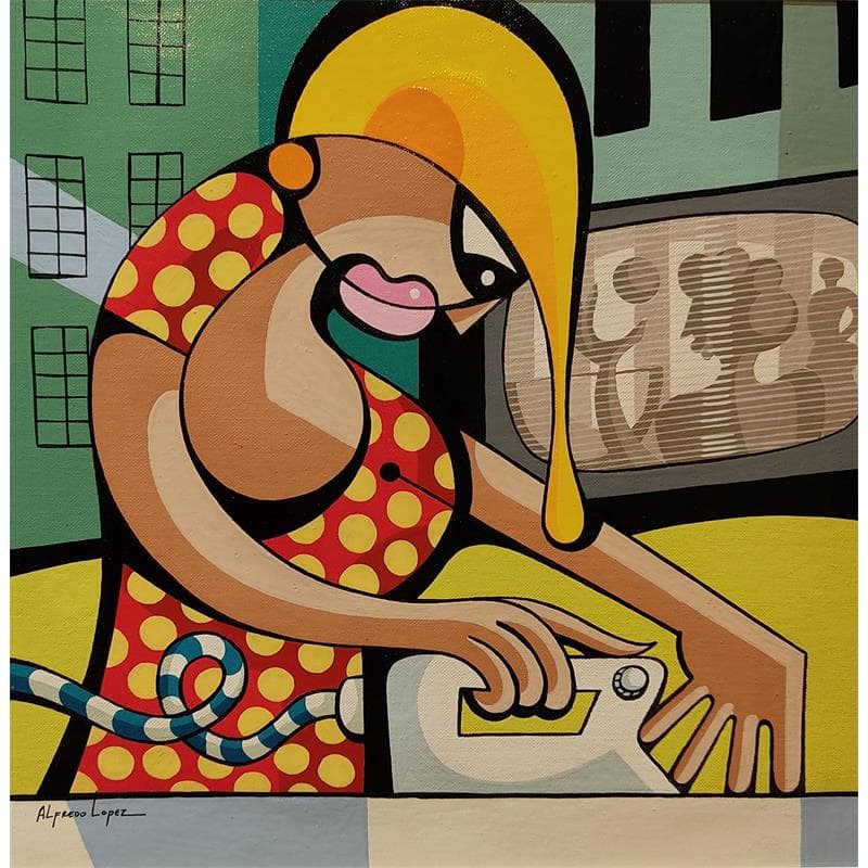 This unique and original contemporary artwork "LE MARI SPORTIF" on the subject of Life style has been created by the contemporary artist Lopez Alfredo.