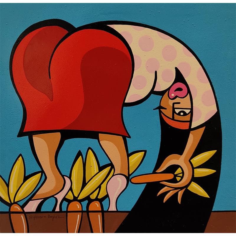 This unique and original contemporary artwork "RECOLTE A LA PARISIENNE" on the subject of Life style has been created by the contemporary artist Lopez Alfredo.