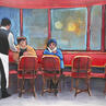 The artist used acrylics to create this small-format figurative painting on paper.