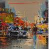 Painting Black cab in London by Frédéric Thiery | Painting Figurative Urban Life style Acrylic