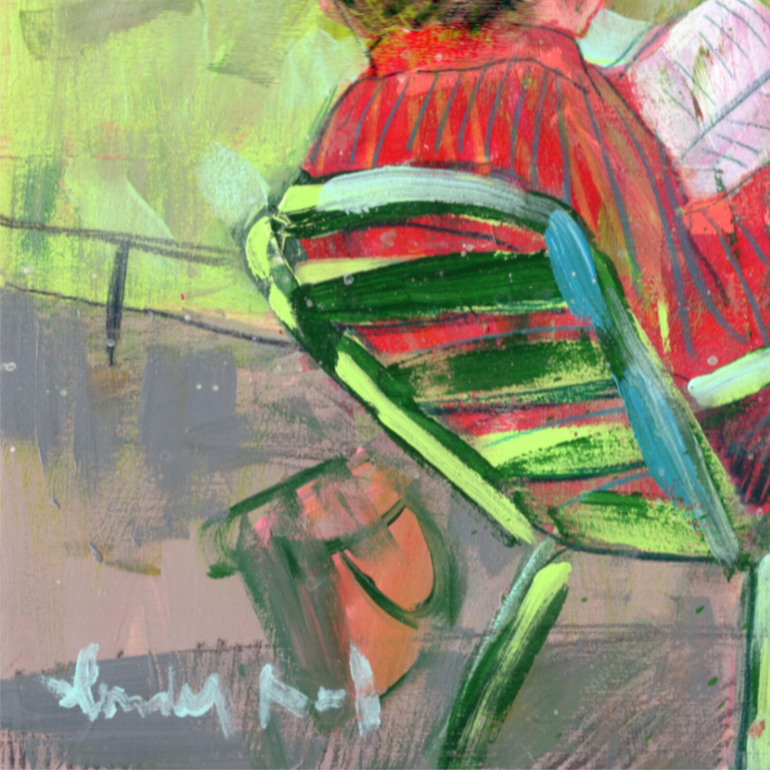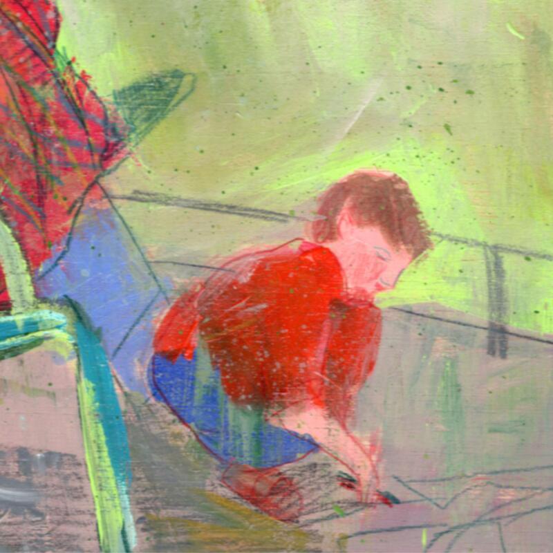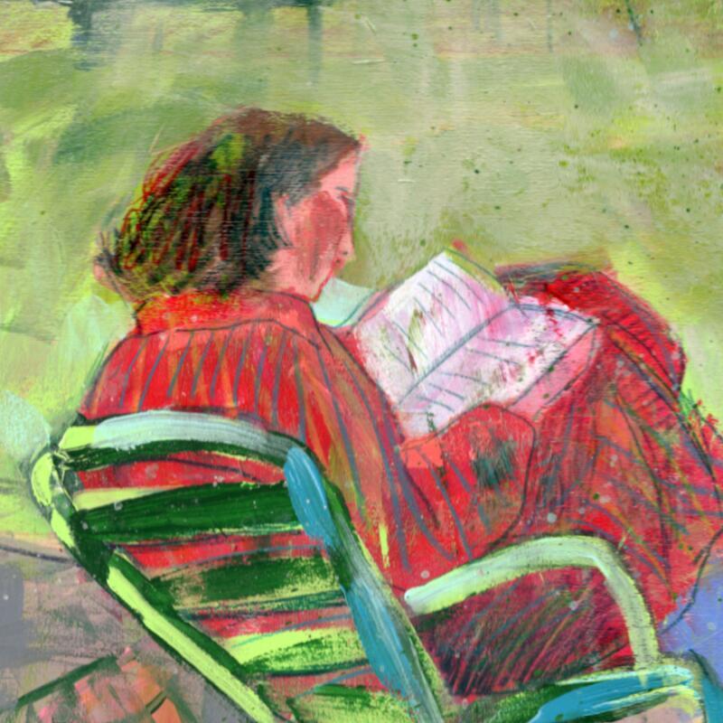 Lourdes Ral is a Spanish artist at the crossroads of painting and design. Trained in art history, she worked for a long time in graphic design before devoting herself fully to creation. Her paintings depict intimate scenes: readings, conversations, suspended moments in a café or garden. Her delicate, sensitive universe celebrates the beauty of everyday life and the warmth of shared moments.