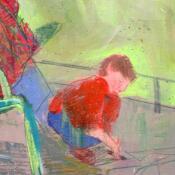 Reading transports her to an inner world, a world filled with conversations. Her son, drawing on the ground. With time, with calm, each suspended in time, in the Luxembourg Gardens.