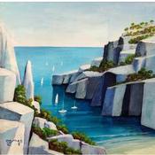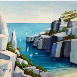 This unique and original contemporary artwork "Calanque d'en Vau AP 122" on the subjects of Marine, Landscapes has been created by the contemporary artist Burgi Roger.