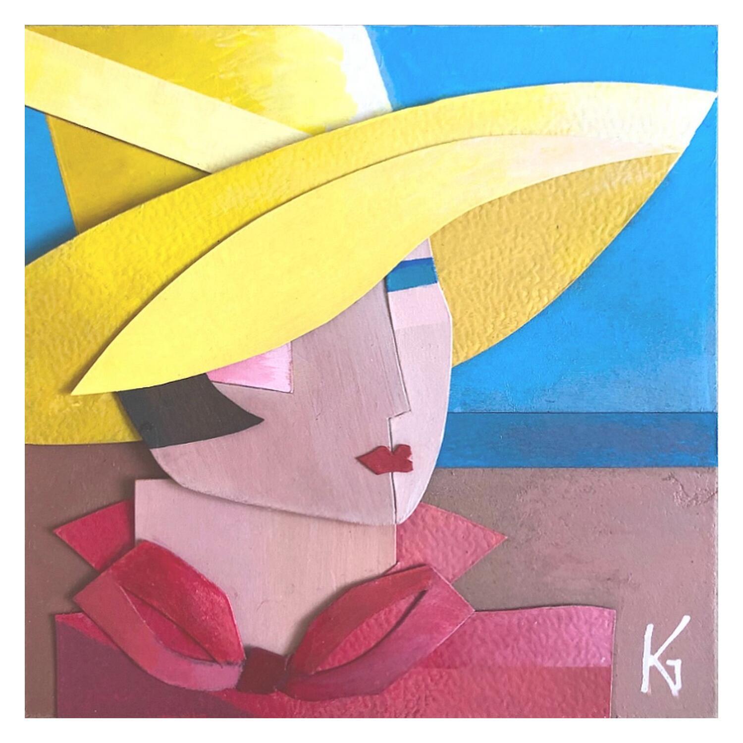 The artist used Acrylic, Wood and Collage techniques to create this small-format Figurative painting on Wood with a Fashion theme.