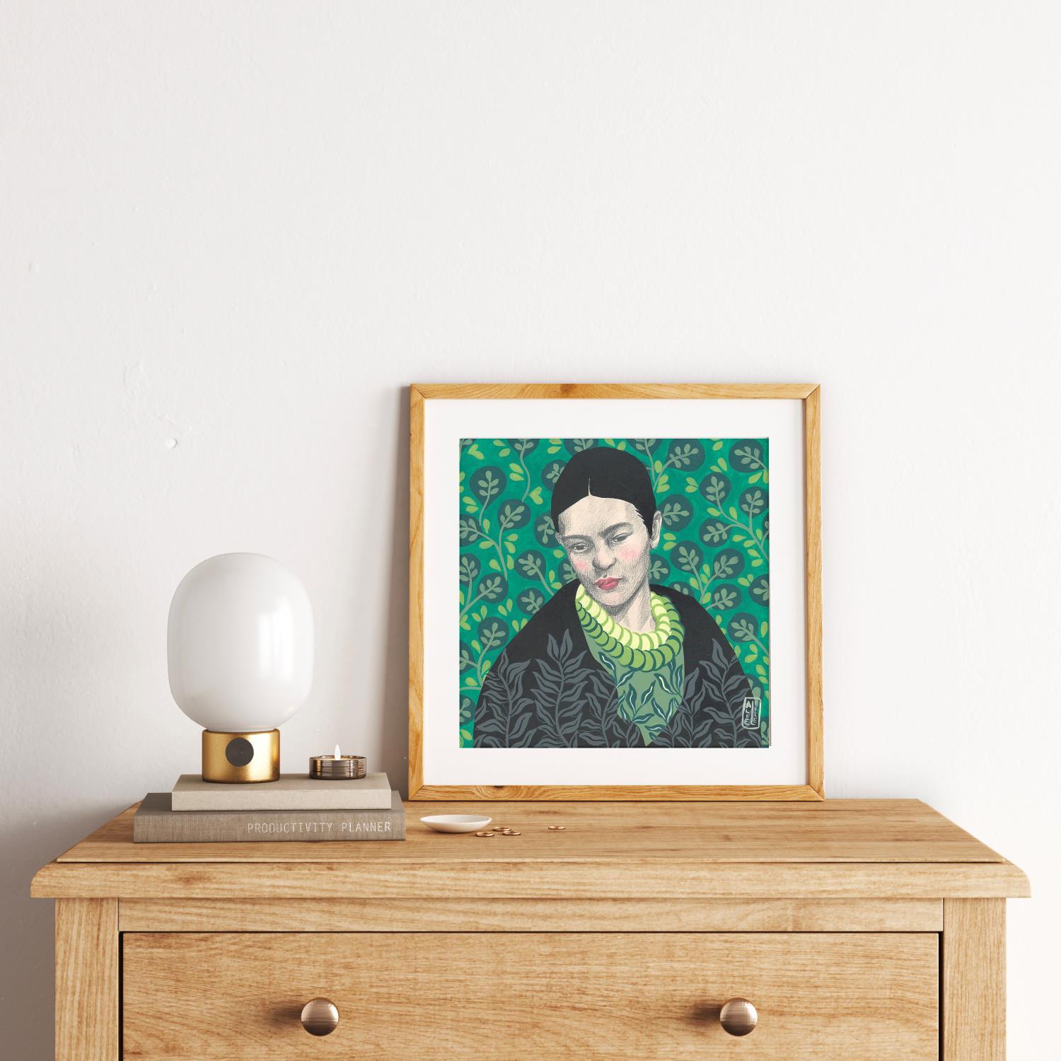 This unique and original contemporary artwork "Frida #9" on the subjects of Nature, Portrait has been created by the contemporary artist Alie Loizel.