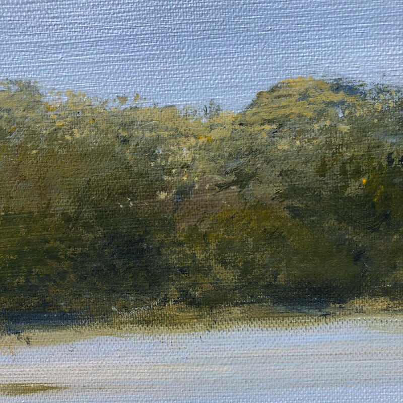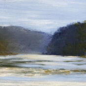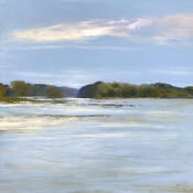 The beauty of the Loire River is captured in soft, summery colors. This painting evokes a sense of calm and serenity. The sandbars, the river’s width, and its depth are characteristic of the Loire at Bouchemaine, near Angers.