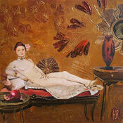 This unique and original contemporary artwork "Modèle " on the subjects of Nude, Life style has been created by the contemporary artist Romanelli Karine.