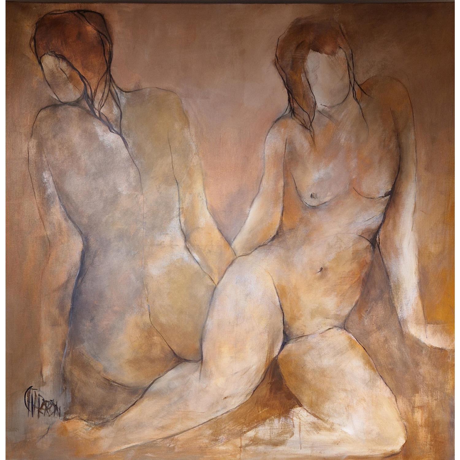 This unique and original contemporary artwork "Plaisirs Partgés 2" on the subject of Nude has been created by the contemporary artist Chaperon Martine.