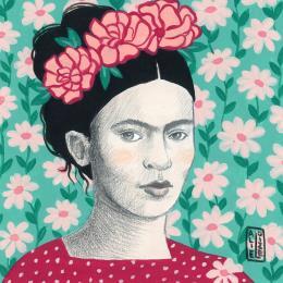 This unique and original contemporary artwork "Frida #10" on the subject of Portrait has been created by the contemporary artist Alie Loizel.