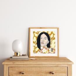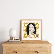 This unique and original contemporary artwork "Yoko" on the subject of Portrait has been created by the contemporary artist Alie Loizel.