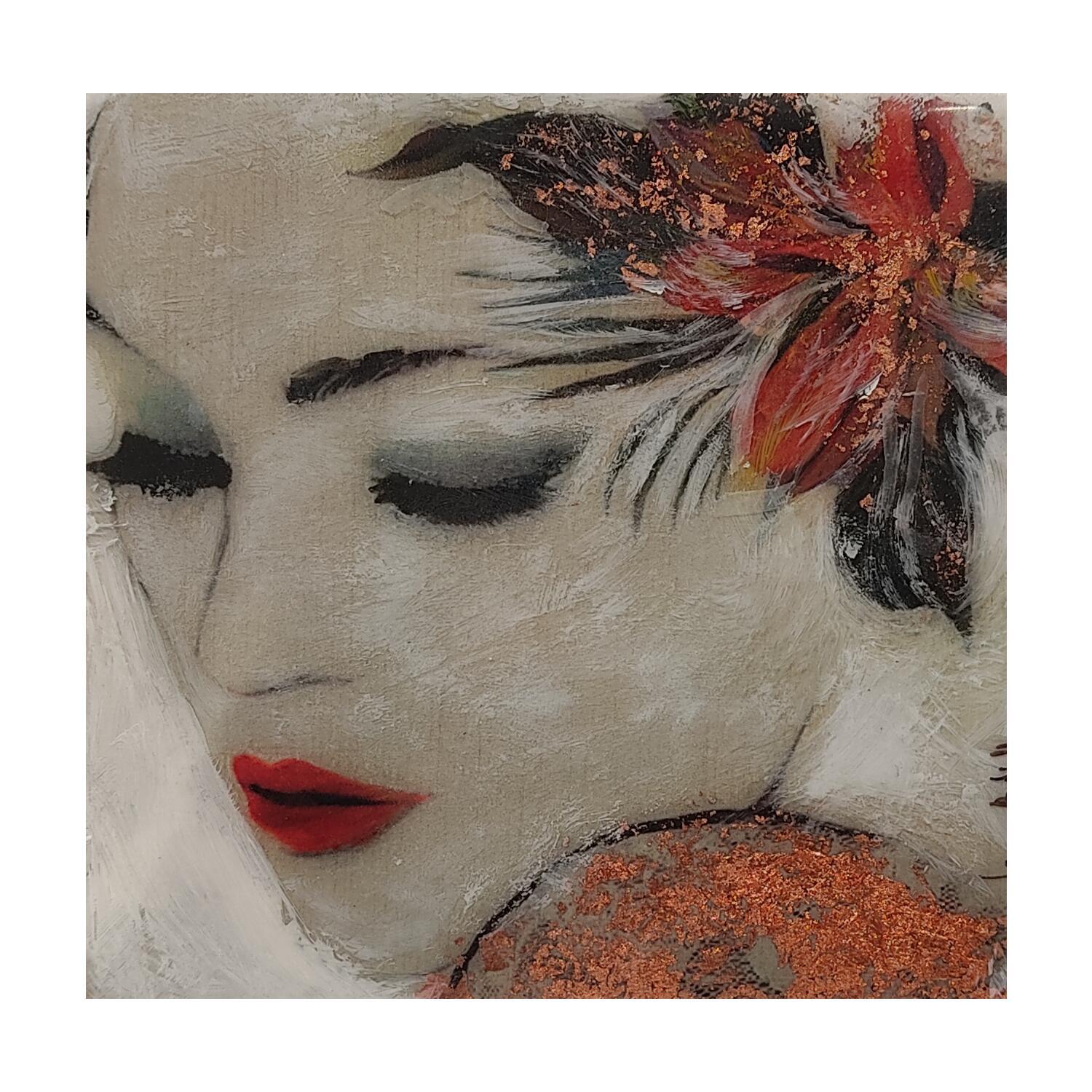 This unique and original contemporary artwork "Rita Soñadora" on the subject of Portrait has been created by the contemporary artist Bofill Laura.