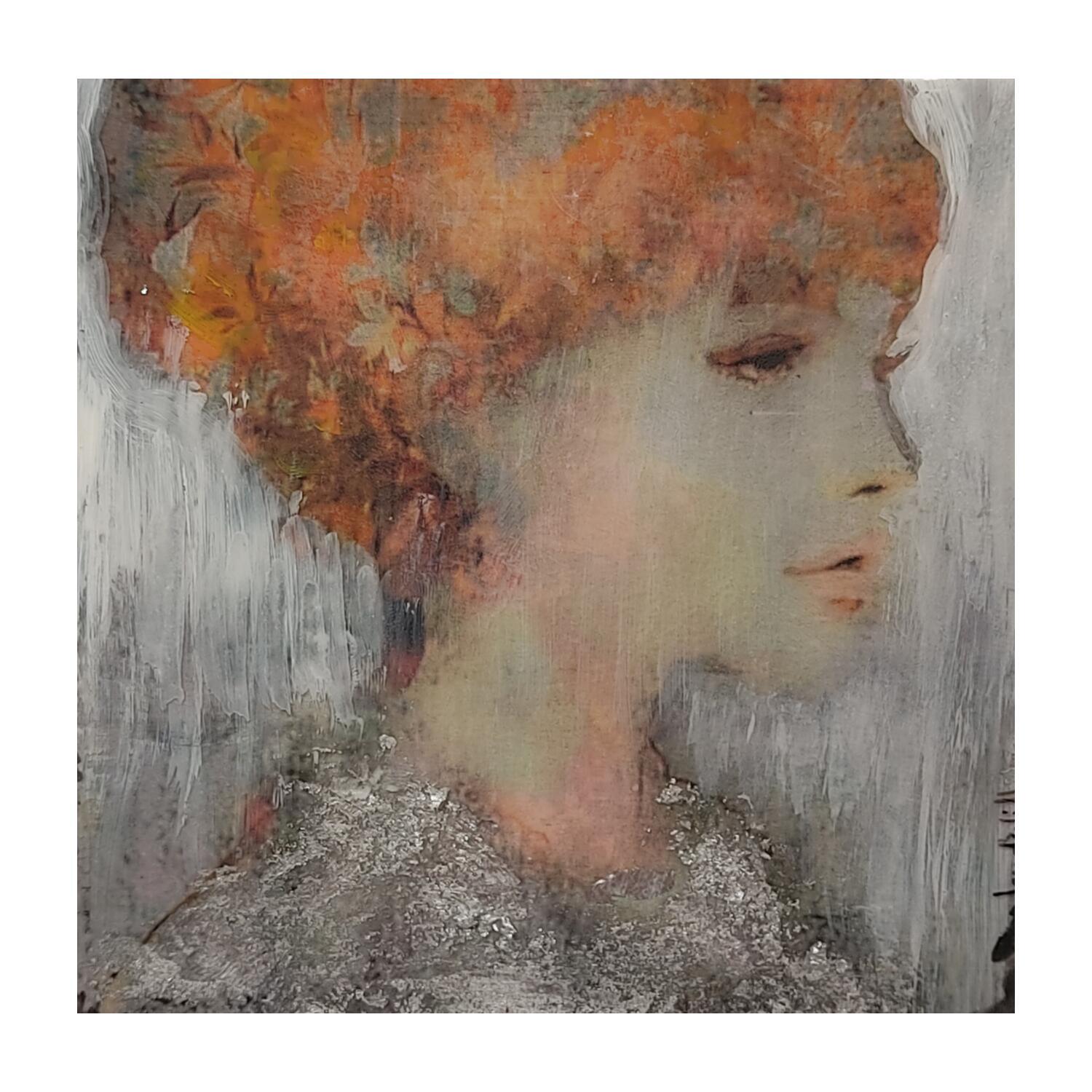 This unique and original contemporary artwork "Vestida de plata" on the subject of Portrait has been created by the contemporary artist Bofill Laura.