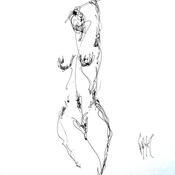 Painting Sonia by Sahuc François | Painting Figurative Nude Minimalist Ink