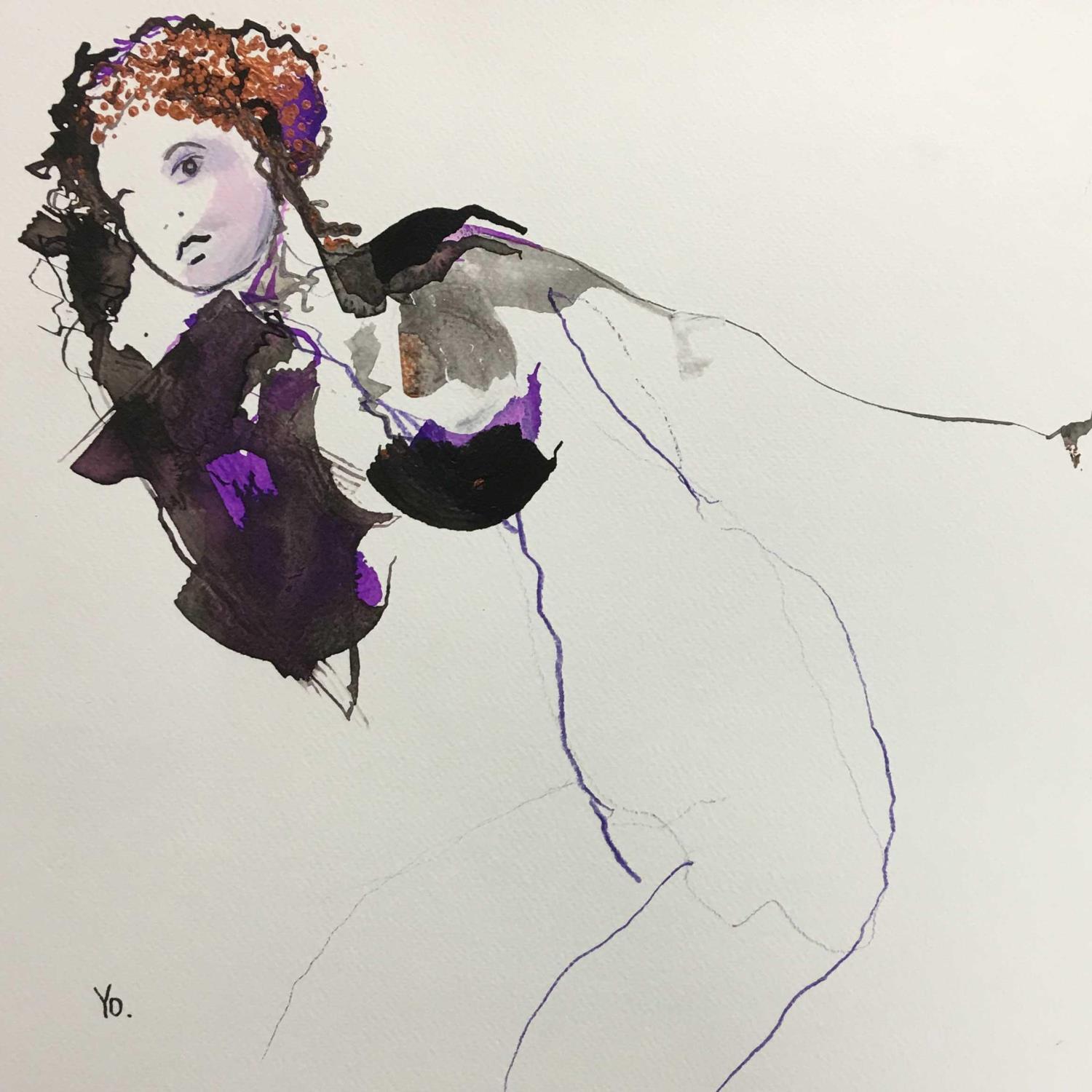 Yo was born and raised in the Paris region in a family where art and design were important. The stroke of a pen from her father fascinated her and drawing competitions were held regularly at home. Very soon she was acquainted with the human figure. Her father, passionate about the poster artists, illustrators and cartoonists of the twentieth century, transmitted this interest to her. After law school, she worked as a lawyer for ten years while attending workshops sponsored by the city of Paris. In 2001, she left her salaried work to attend the Versailles School of Fine Arts, where she was devoted entirely to her passion: live models. This form of expression fascinated her and allowed her to tell stories. The body is an anchor in her work. It is the singular envelope of emotions and moods. Yo combines her energy and that of her models, drawing with instinct and precision the movements and attitudes of the body.