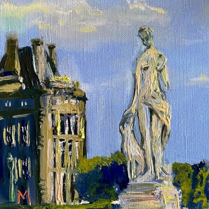 Painting Diane aux Tuileries by Manière Anisa  | Painting Figurative Urban Nature Architecture Oil