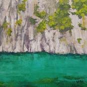 This unique and original contemporary artwork "Au pied de la falaise" on the subject of Landscapes has been created by the contemporary artist Bessé Laurelle.