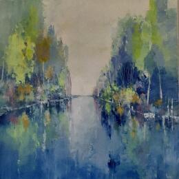 This unique and original contemporary artwork "Rivière" on the subject of Landscapes has been created by the contemporary artist Dessein Pierre.