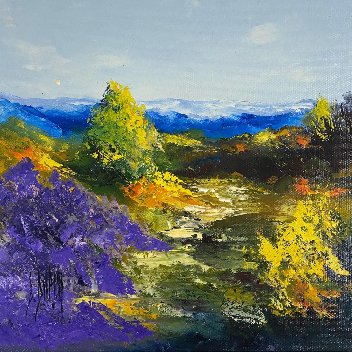 This unique and original contemporary artwork "Les lavandes" on the subject of Landscapes has been created by the contemporary artist Dupin Dominique.
