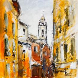 This unique and original contemporary artwork "facades vieux nice" on the subject of Landscapes has been created by the contemporary artist Poumelin Richard.