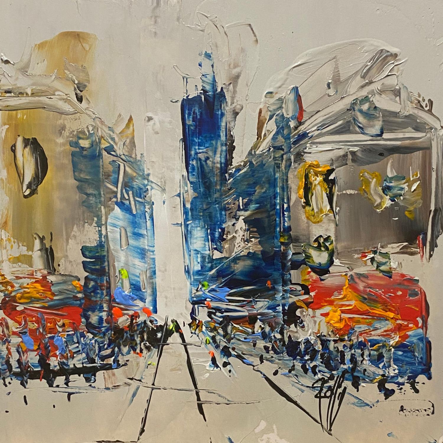This unique and original contemporary artwork "Passage en ville" on the subject of Life style has been created by the contemporary artist Raffin Christian.