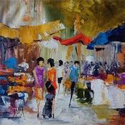 The artist used Oil medium on Canvas to create this Figurative, Small size painting.