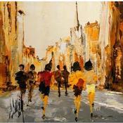 The artist used Oil medium on Canvas to create this Figurative, Small size painting.